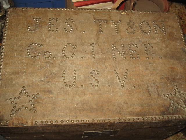 SPANISH AMERICAN WAR SOLDIER IDENTIFIED TACKED DESIGN WOODEN CHEST OF COMPANY C - 1ST NEBRASKA U.S. VOLUNTEERS. CALL OR TEXT FOR MORE INFORMATON
