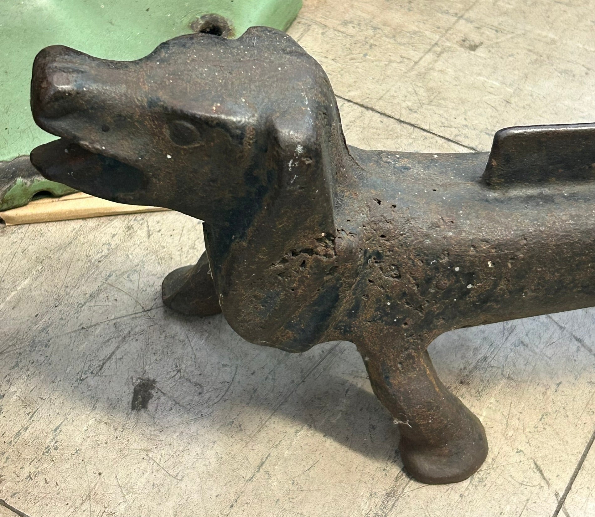SPLAY LEGGED CAST IRON UNUSUAL DACHSHUND ANTIQUE FOOT SCRAPER