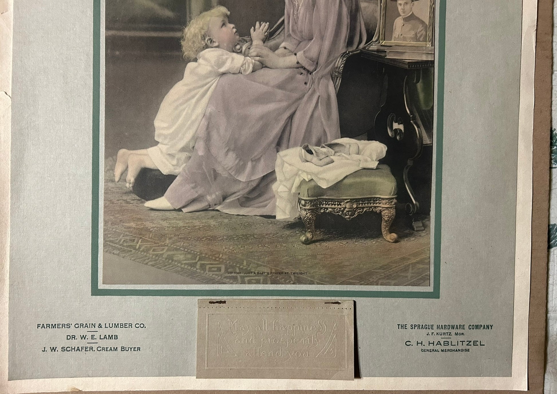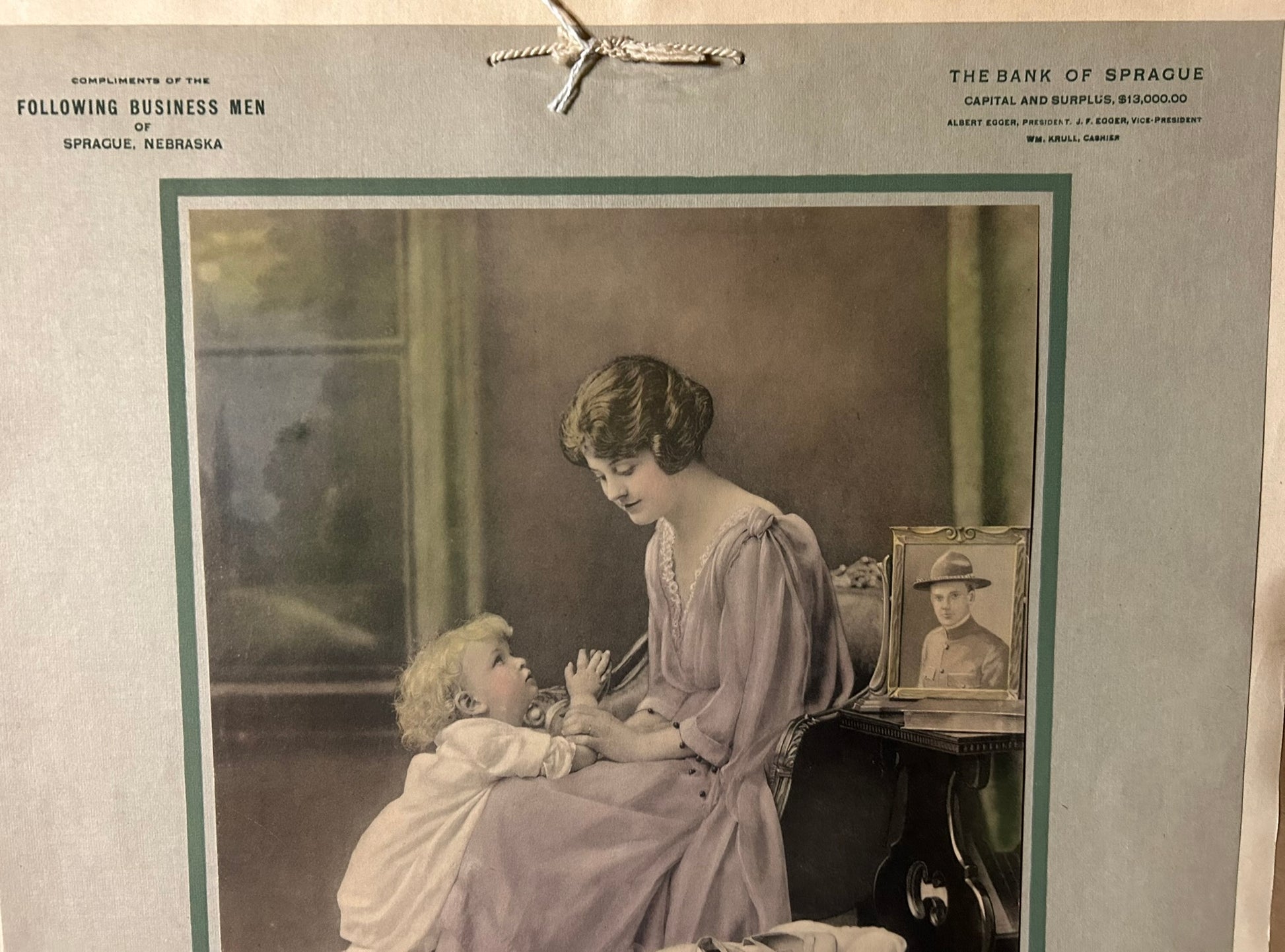 SPRAGUE NEBRASKA 1920 ADVERTISING CALENDAR WITH WOMAN AND CHILD