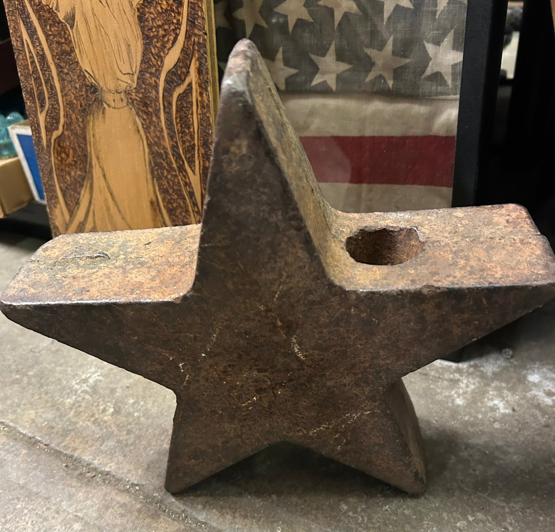 ANTIQUE CAST IRON STAR WINDMILL WEIGHT BY FLINT AND WALLING 10" TALL X 3" THICK. CALL, TEXT, OR E-MAIL FOR MORE INFORMATION