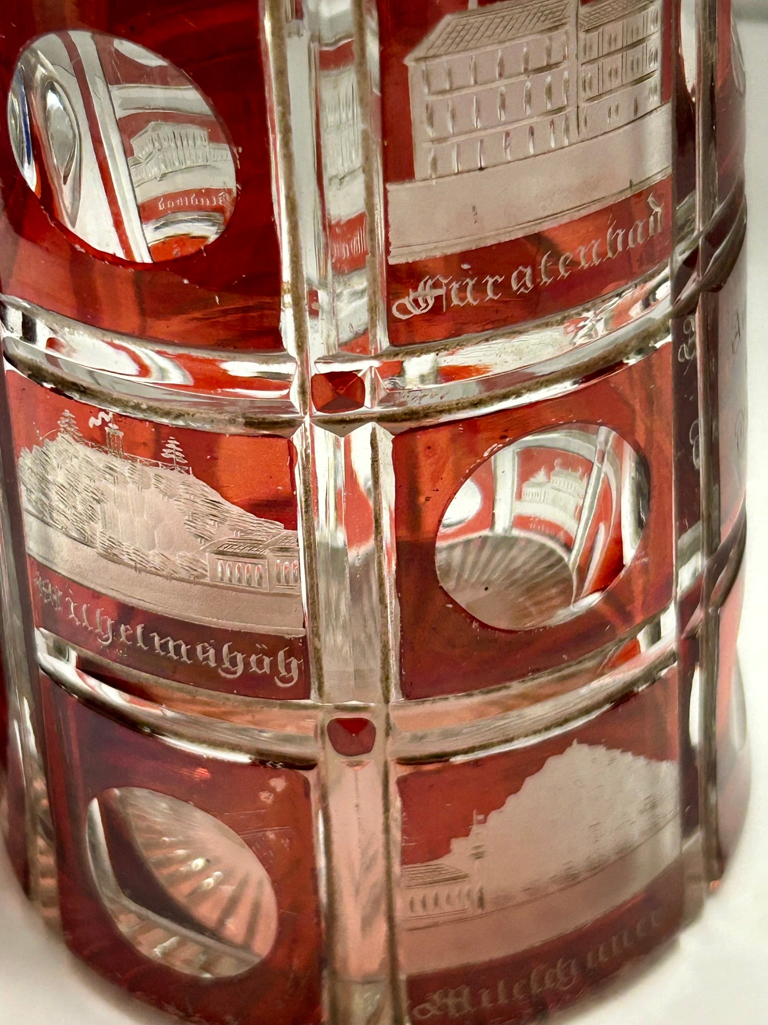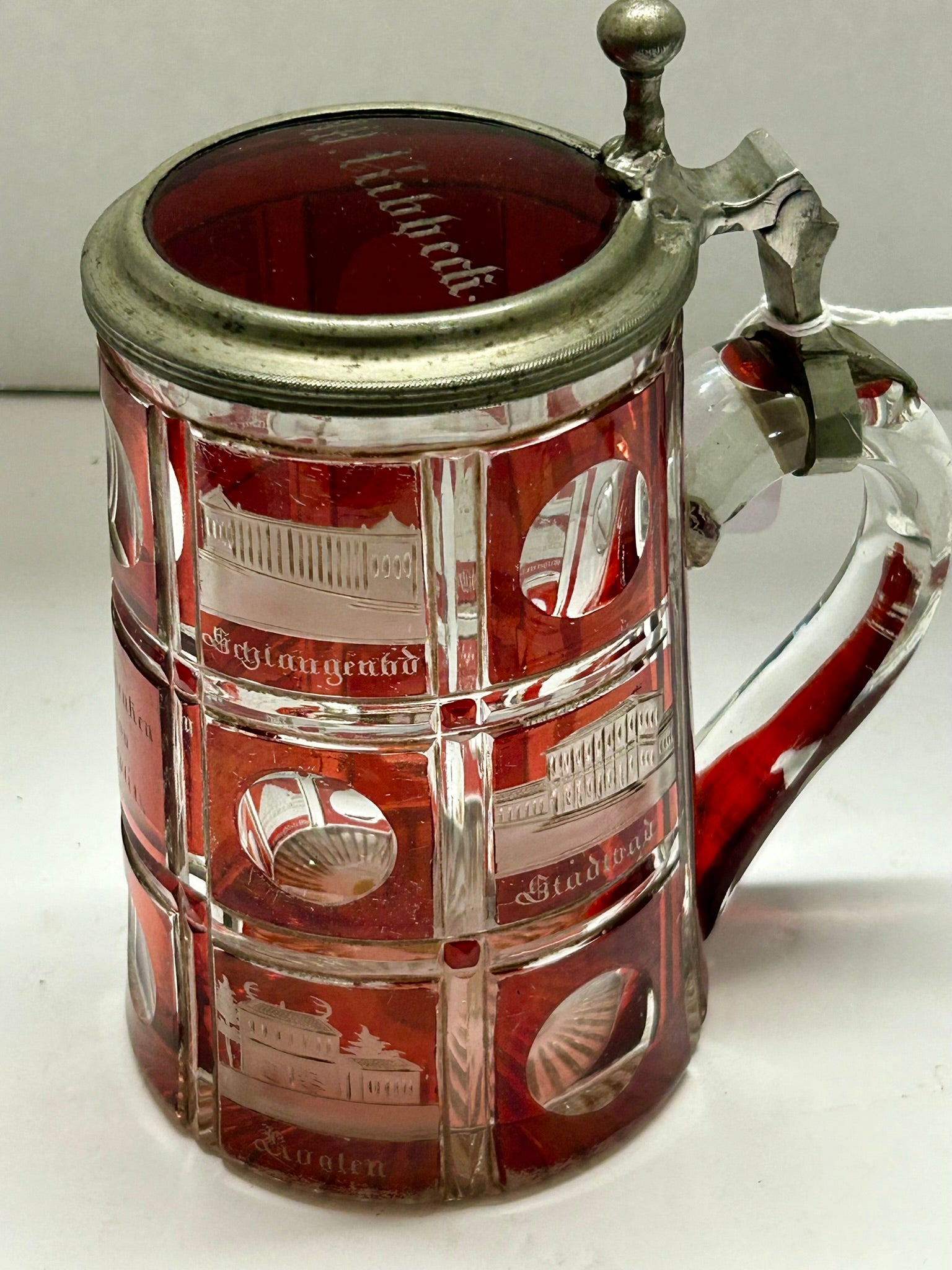 STEIN GRAND TOUR TYPE RED CUT TO CLEAR GLASS LATE 1800'S