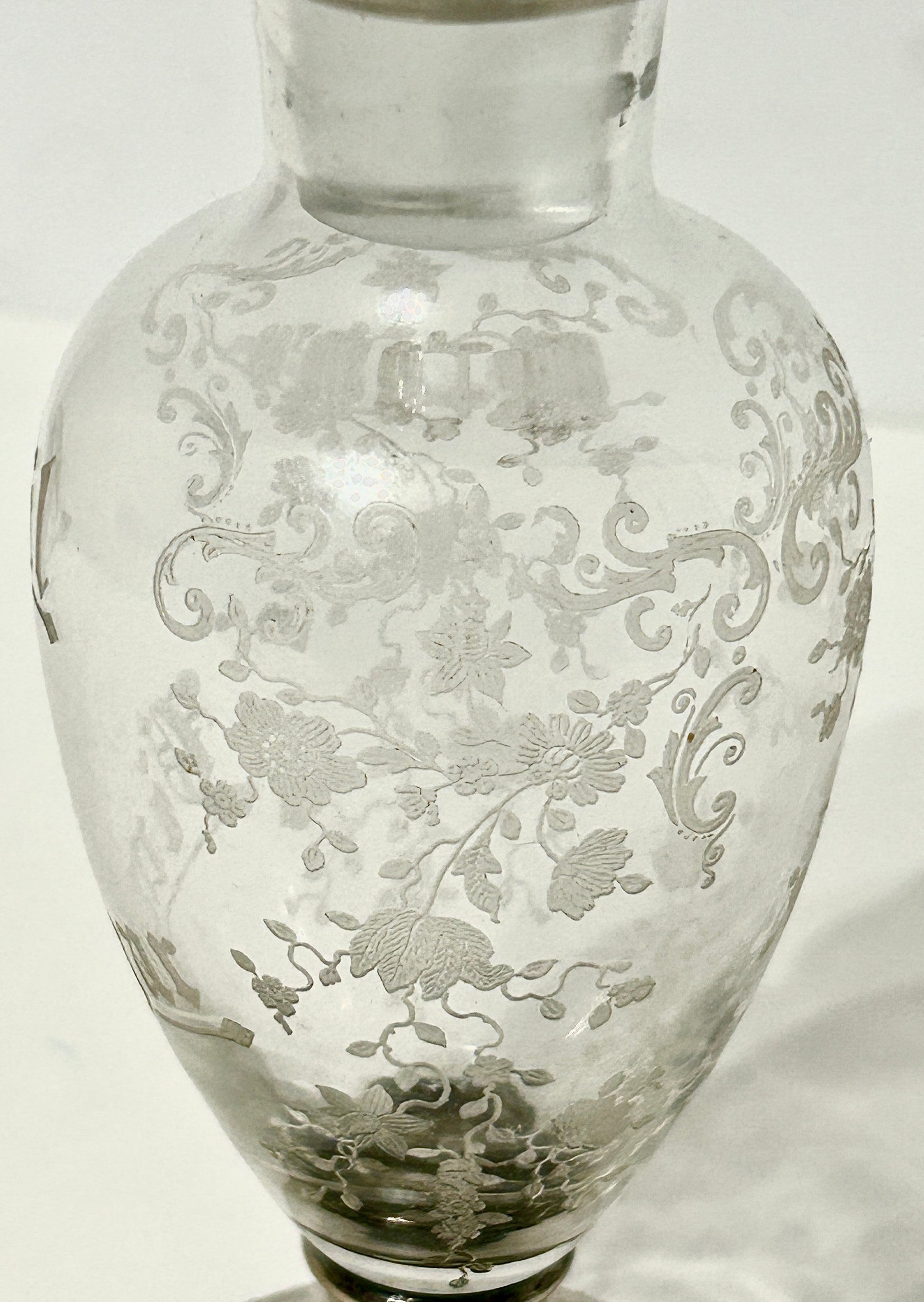 STERLING AND CRYSTAL ETCHED GLASS OIL AND VINEGAR ANTIQUE BOTTLE
