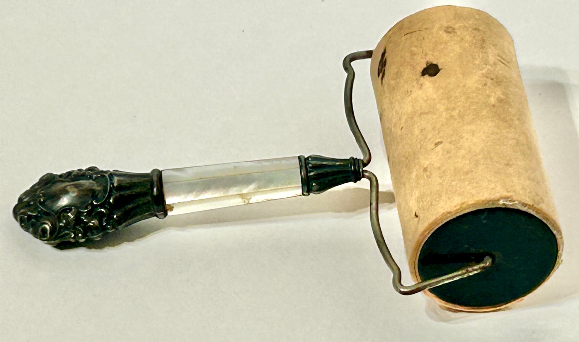STERLING AND MOTHER OF PEARL HANDLED ANTIQUE ROLLER BLOTTER 5" LONG X 3 1/4" WIDE. SHIPPING IS EXTRA COST SO CALL OR TEXT US TO FIND OUT WHAT WE WILL HAVE TO PAY TO SHIP TO YOUR AREA