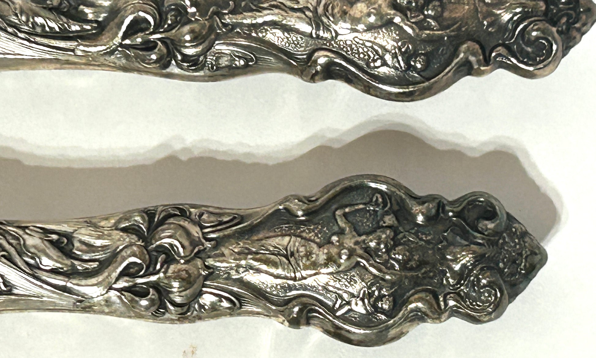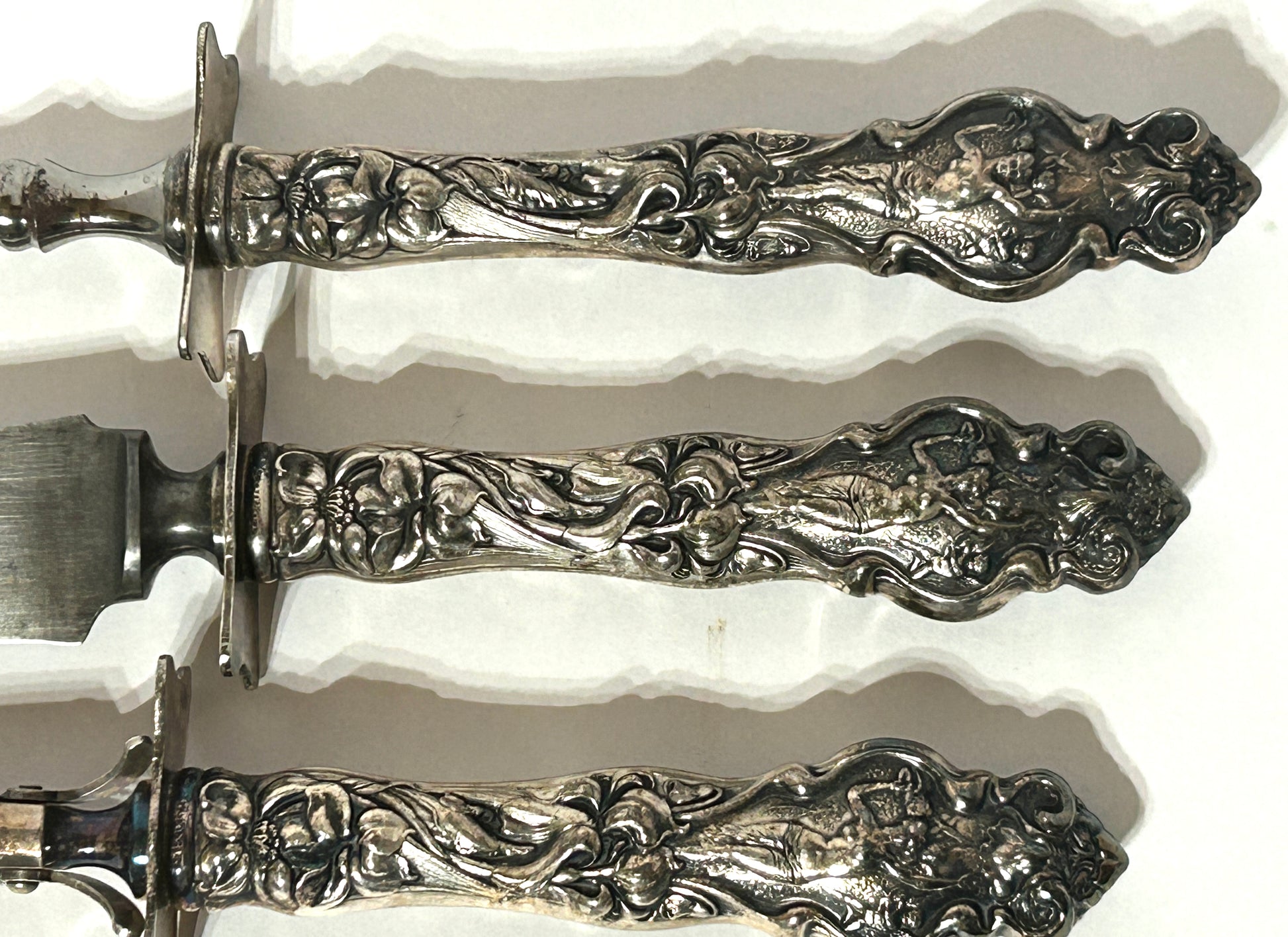 STERLING HANDLE WALLACE IRIAN PATTERN CARVING SET
