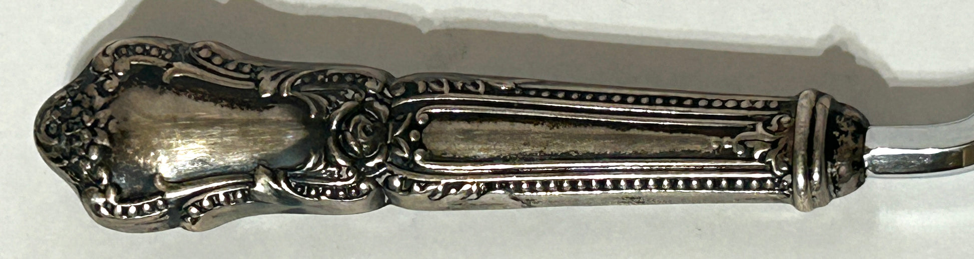PAIR OF STERLING HANDLED CHEESE AND MEAT SLICERS - LARGEST IS 10 3/4" LONG. SHIPPING IS EXTRA SO CALL OR TEXT TO FIND OUT HOW MUCH SHIPPING WILL COST