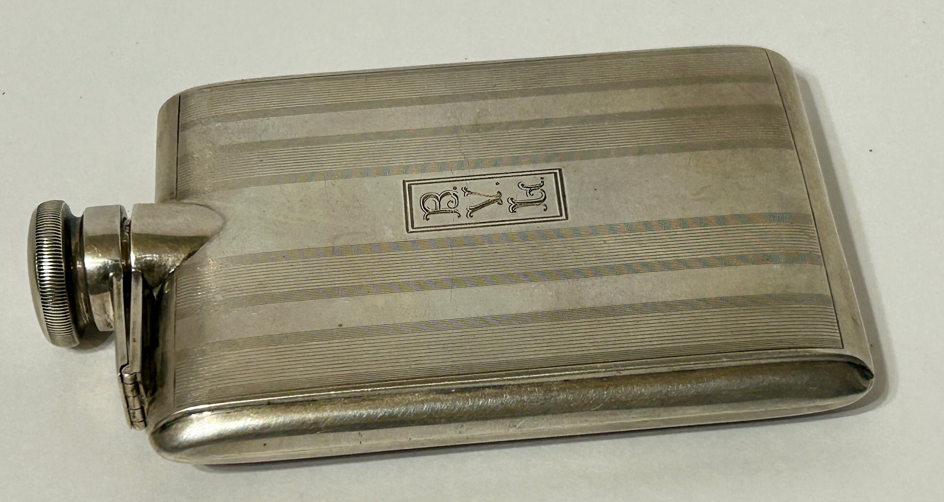 ANTIQUE STERLING SILVER FLASK 5" LONG X 3" WIDE. SHIPPING IS EXTRA SO CALL OR TEXT TO FIND OUT HOW MUCH SHIPPING WILL BE