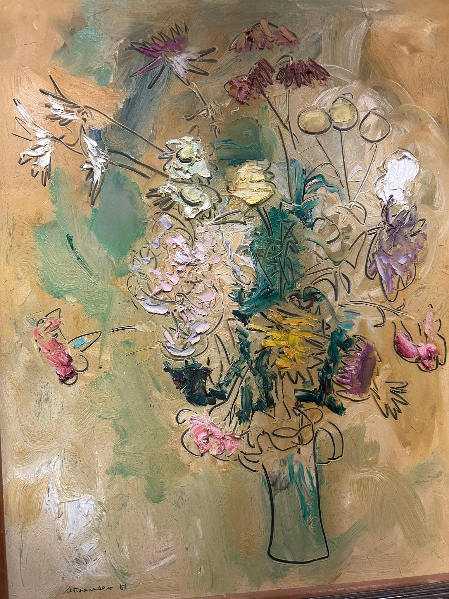 STERLING STRAUSER FLORAL PAINTING 1907-1995 PENNSYLVANIA ARTIST, 29" X 23". CALL, TEXT, OR E-MAIL FOR MORE INFORMATION