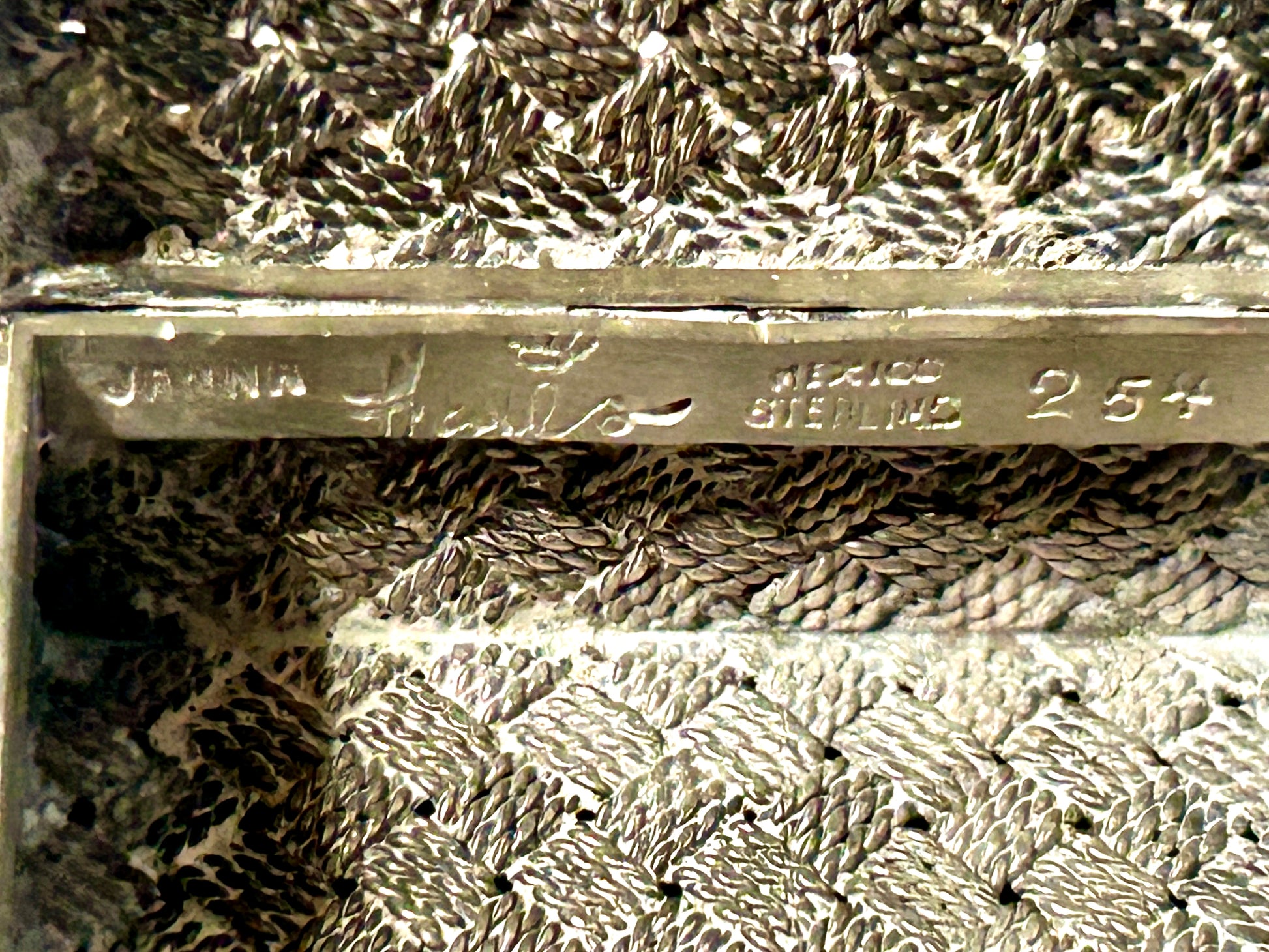STERLING SMALL HEAVY TRUNK SHAPE STERLING BOX BY JONNA THOMAS DE VELARDE MEXICO 2" LONG X 2 1/4" DEEP X 1" TALL. SHIPPING COST IS EXTRA SO CALL OR TEXT US TO FIND SHIPPING COST TO YOUR ADDRESS