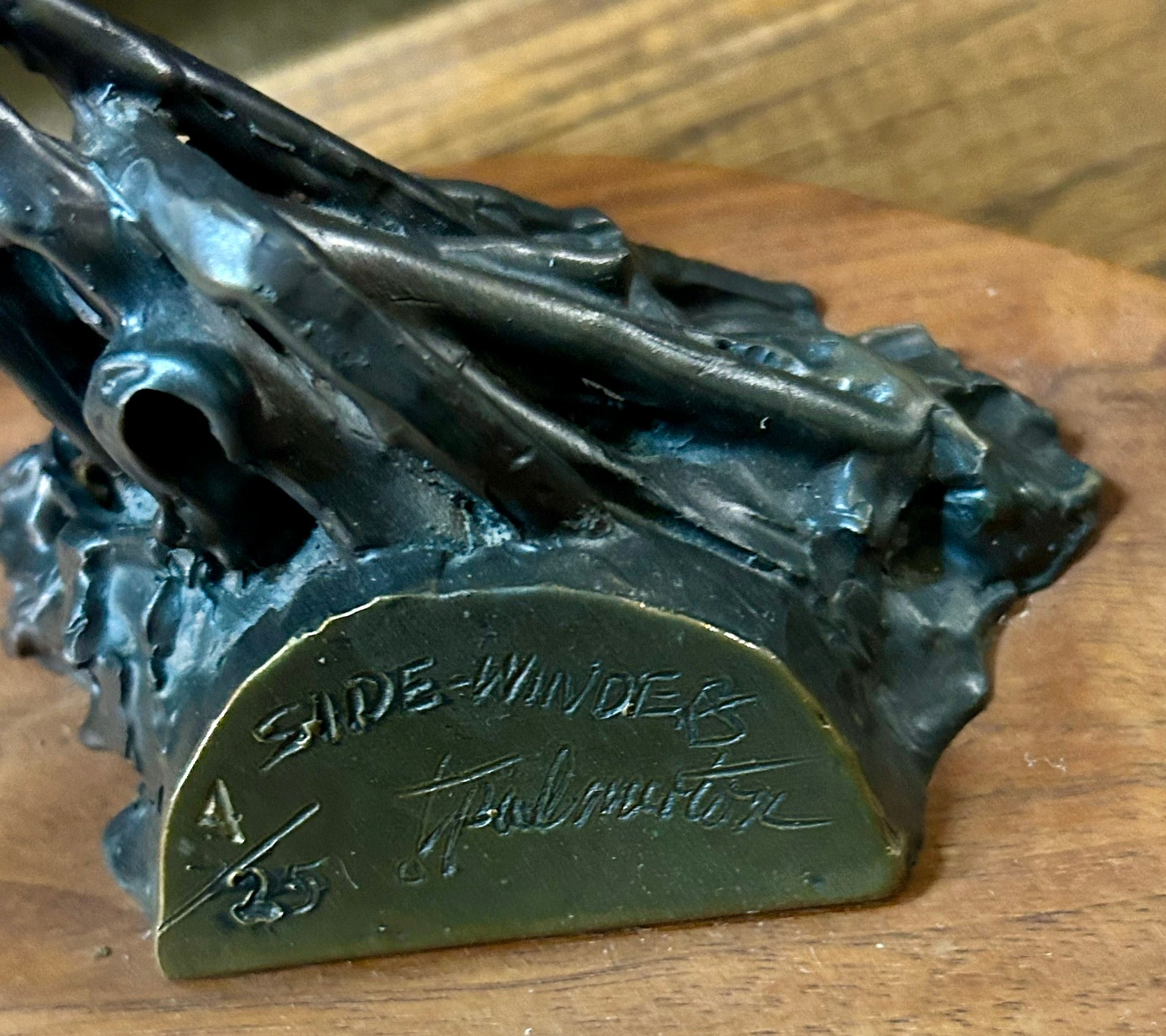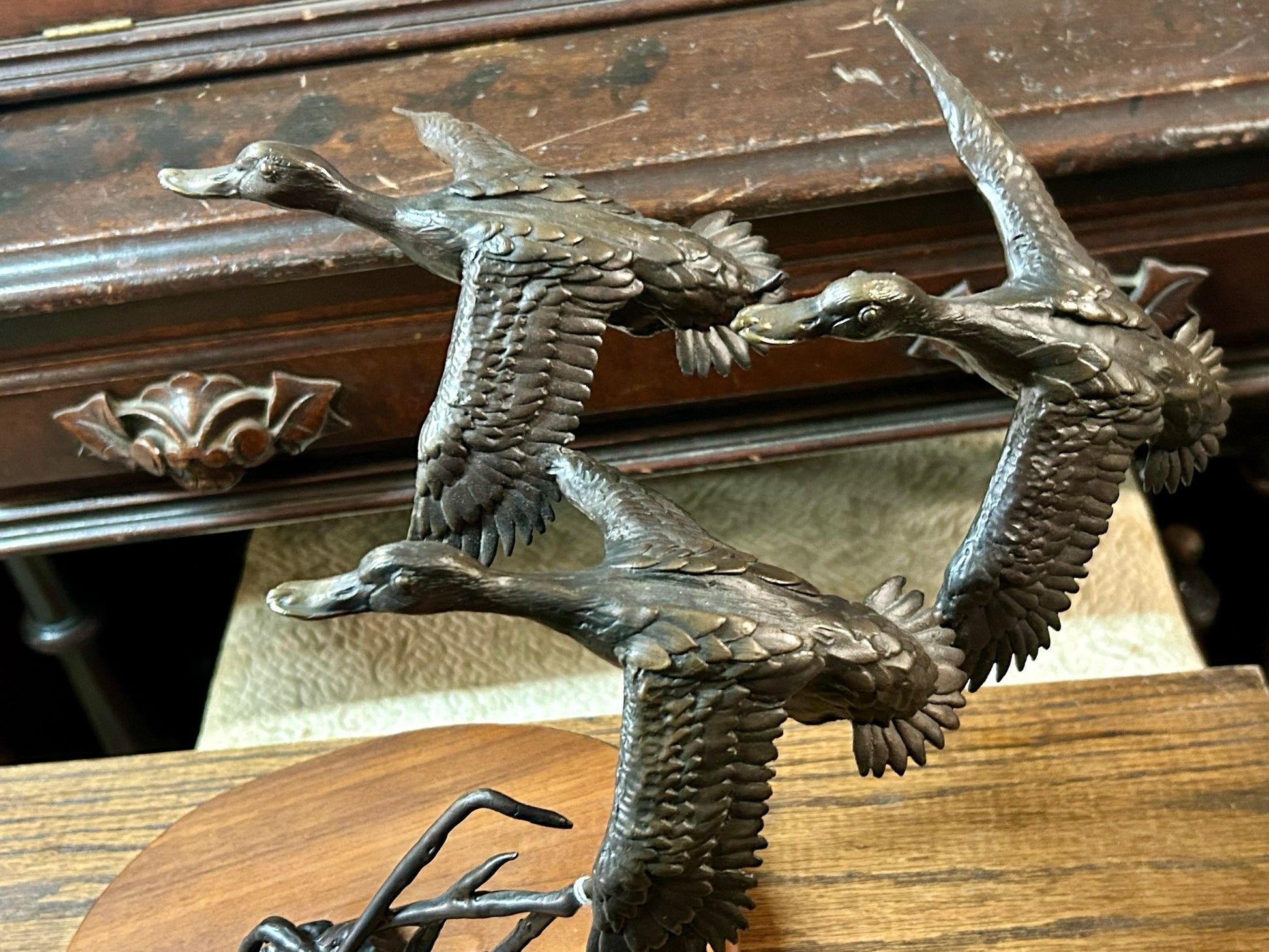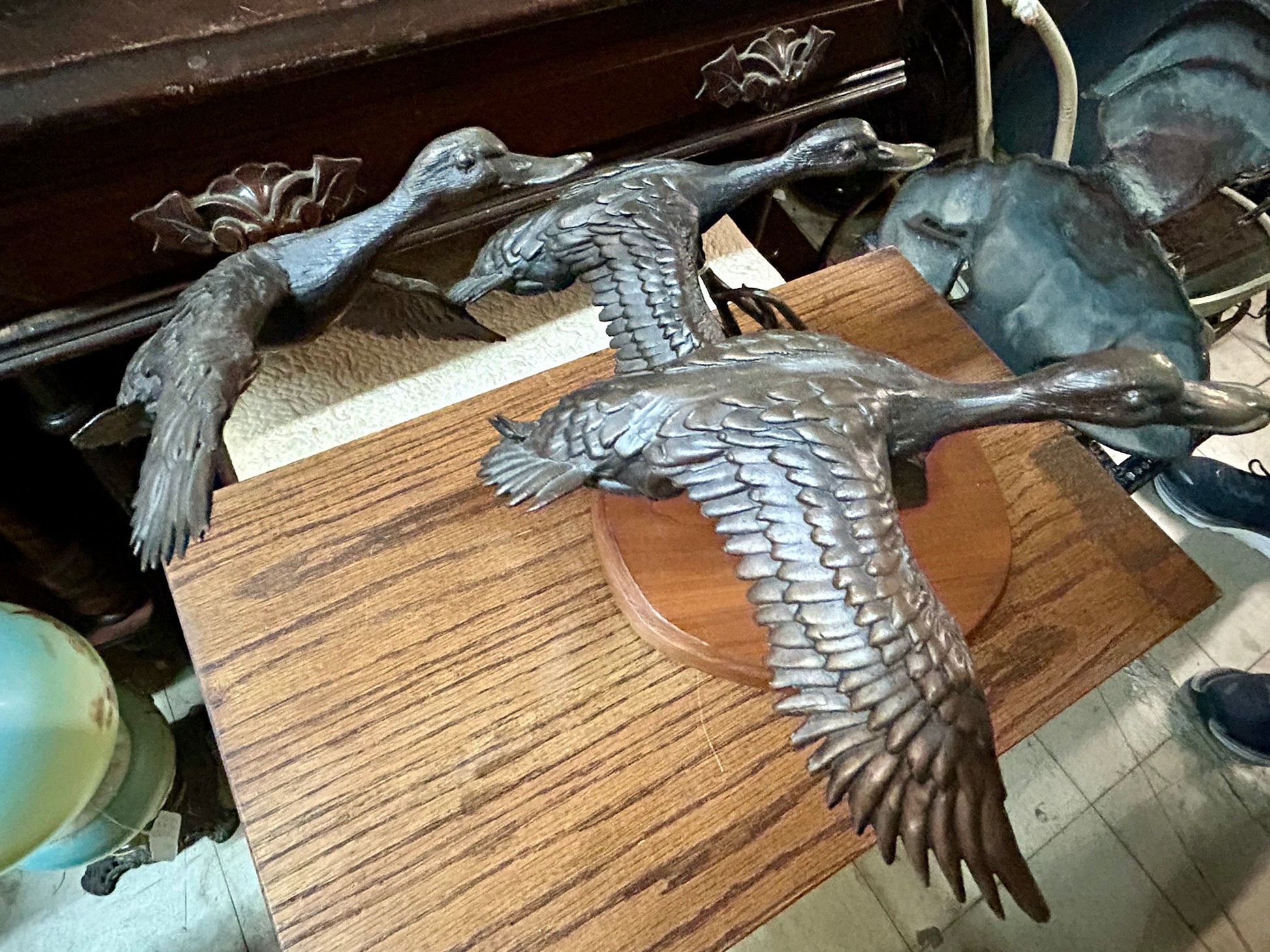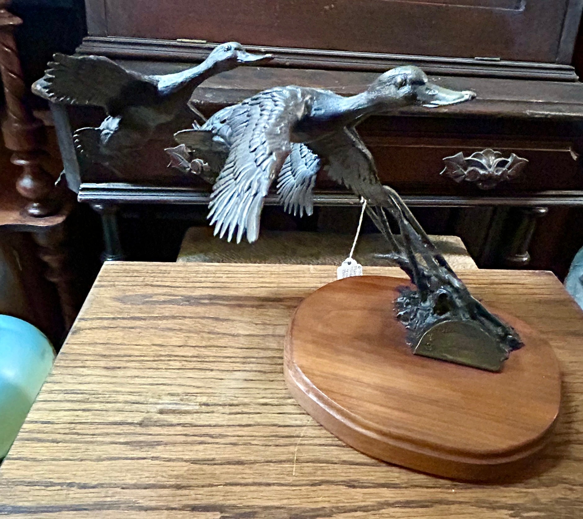 THOMAS PALMERTON, NEBRASKA ARTIST BRONZE OF DUCKS IN FLIGHT "SIDE WINDERS" #4 OF 25, 10 1/2" HIGH AND 17" WIDE. CALL, TEXT, OR E-MAIL FOR MORE