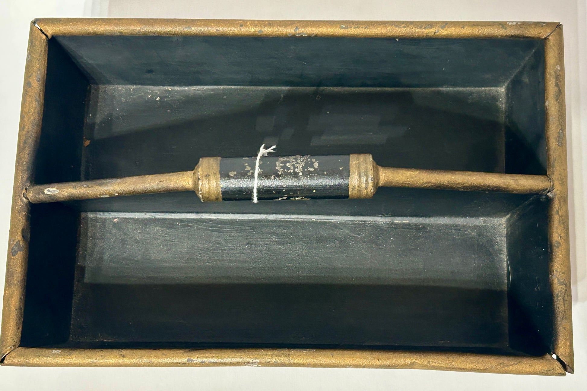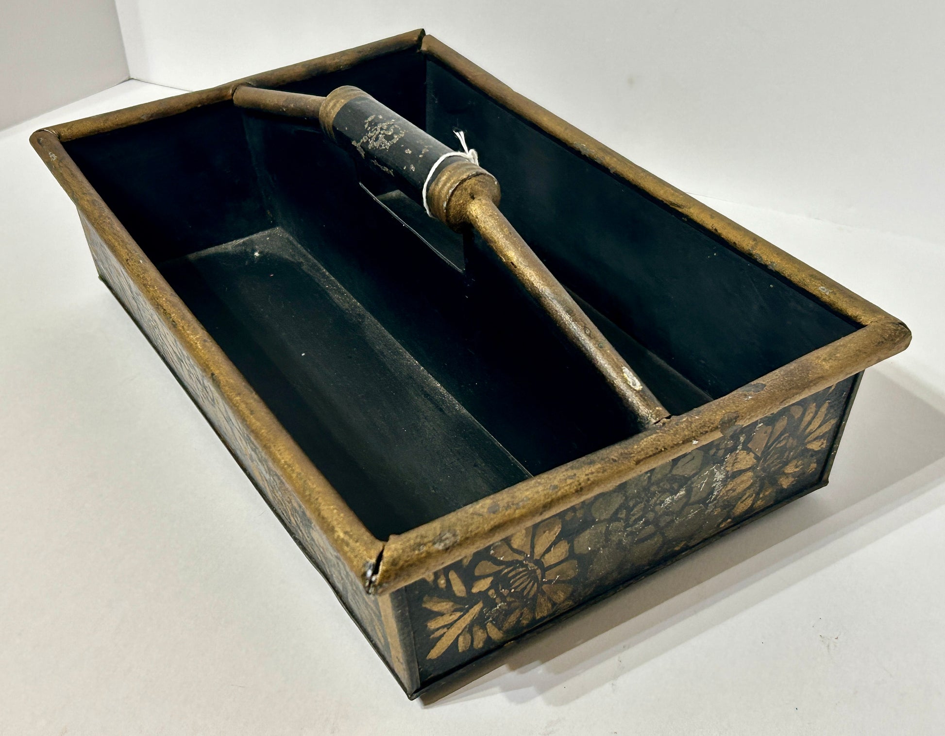 TOLE DECORATED ANTIQUE TINWARE SILVERWARE CADDY