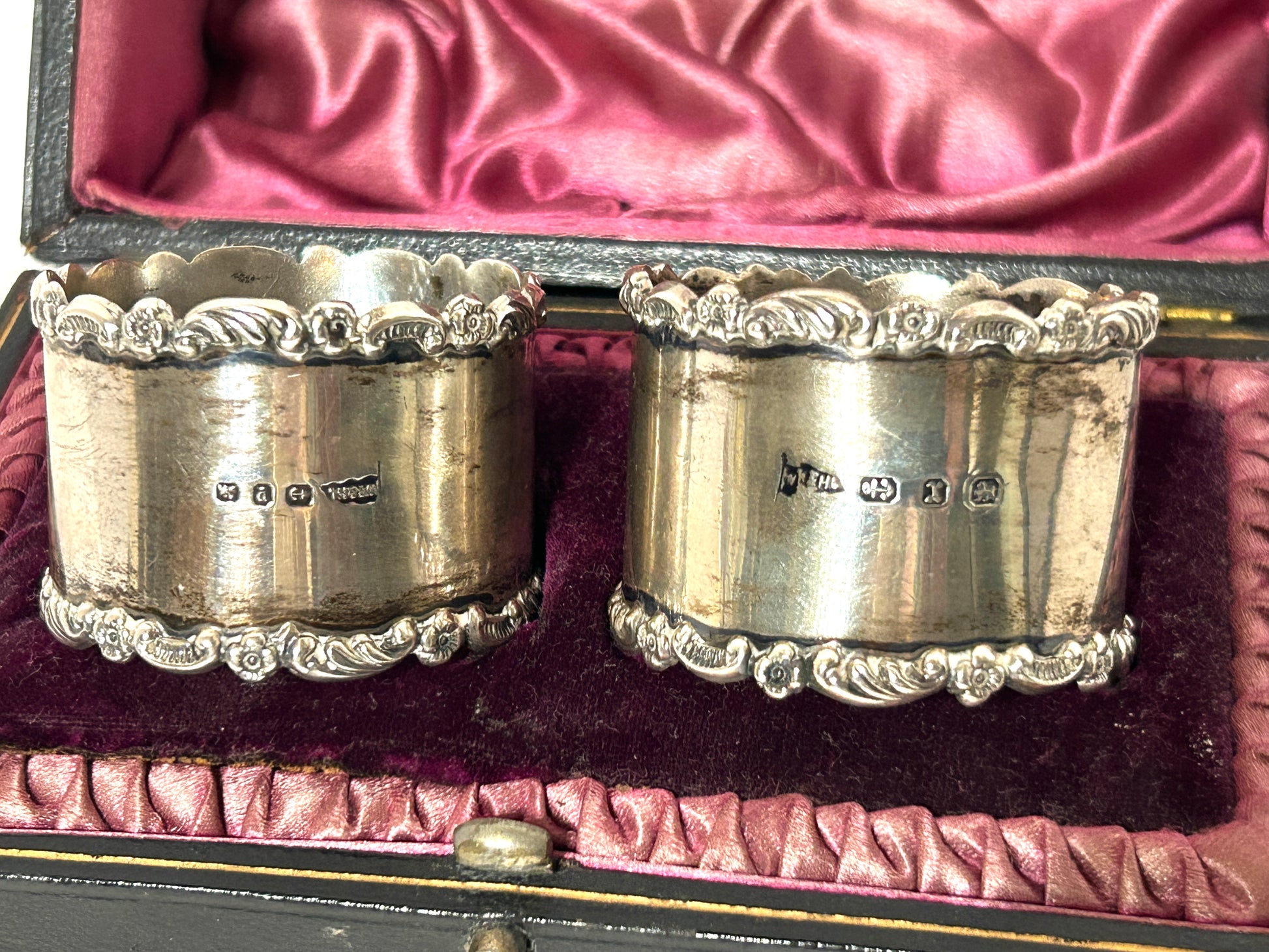 WALKER AND HALL PAIR OF ANTIQUE SILVER NAPKIN RINGS
