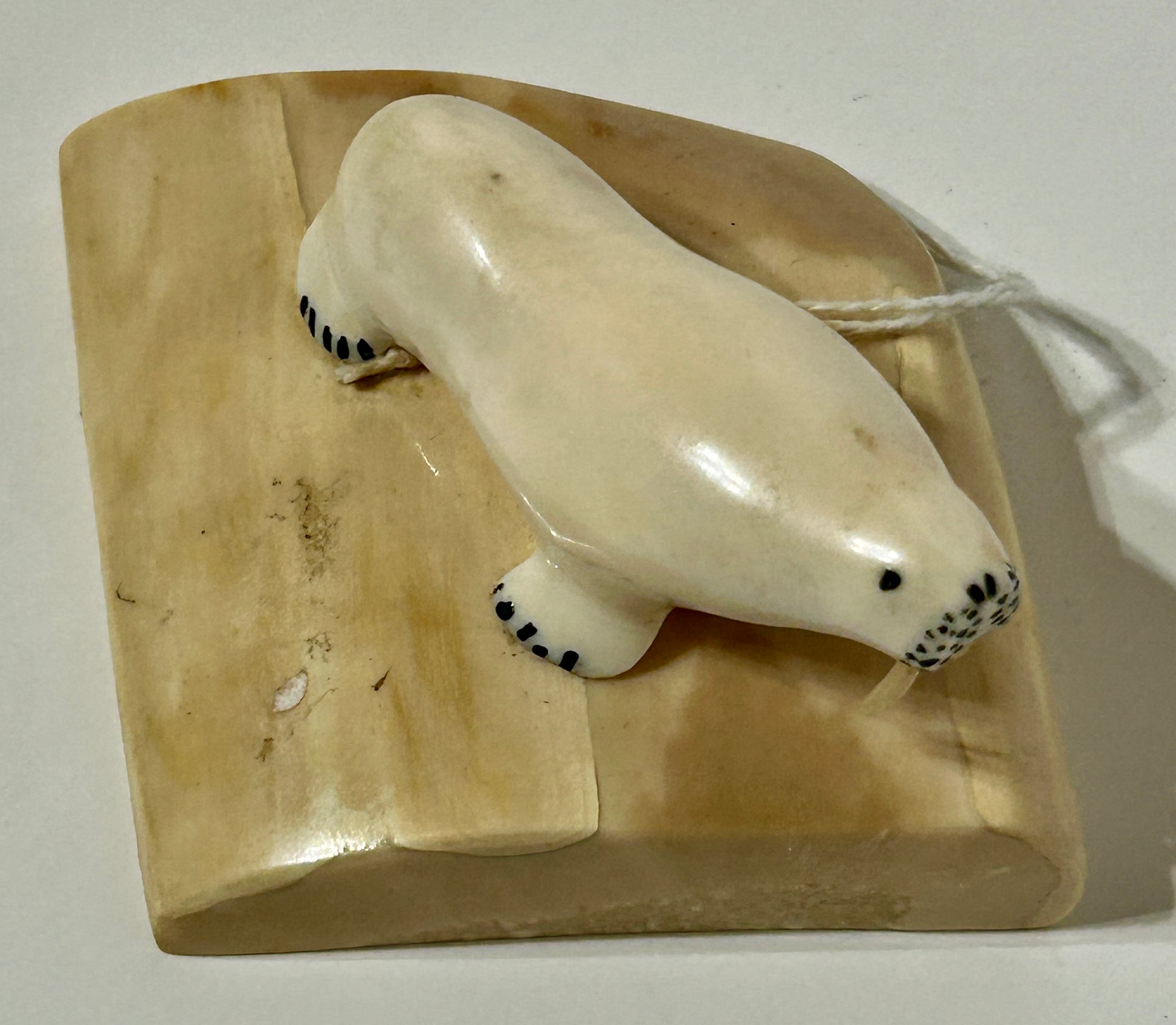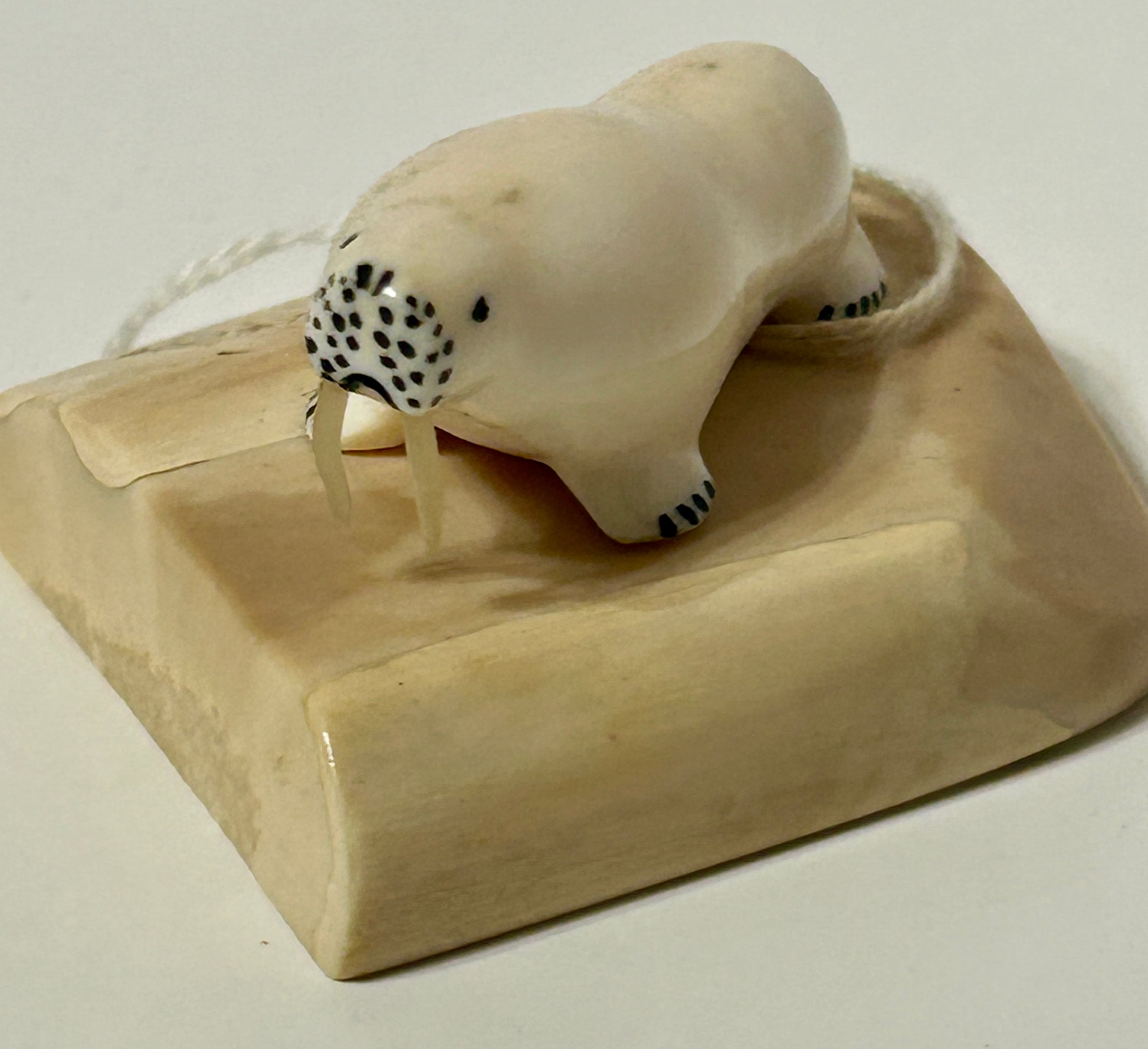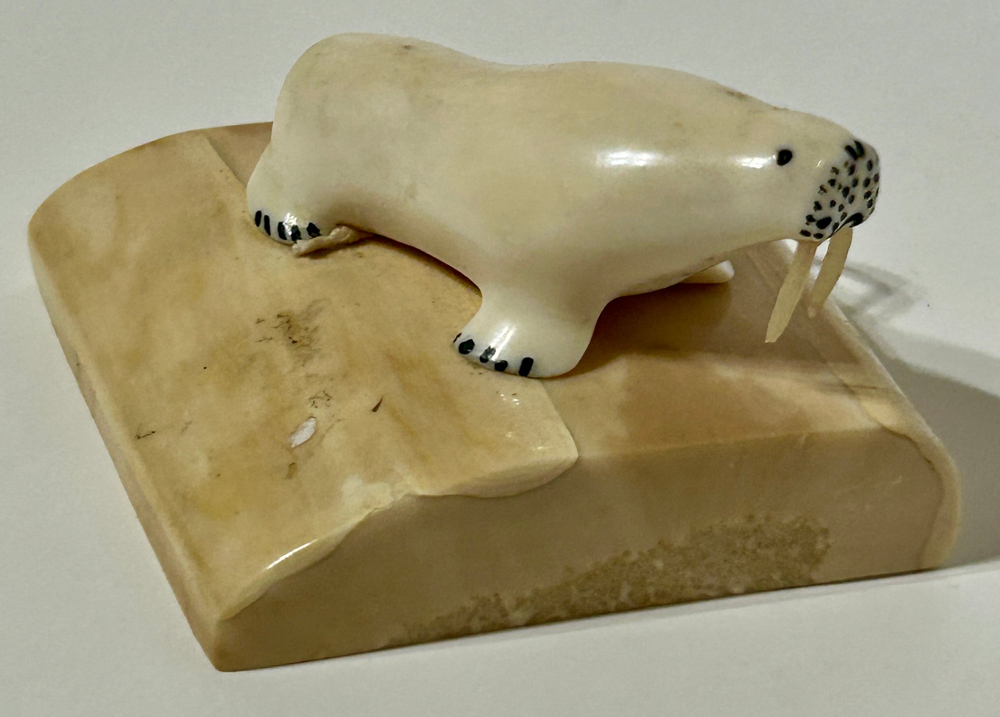 WALRUS IVORY CARVING OF WALRUS ON BASE