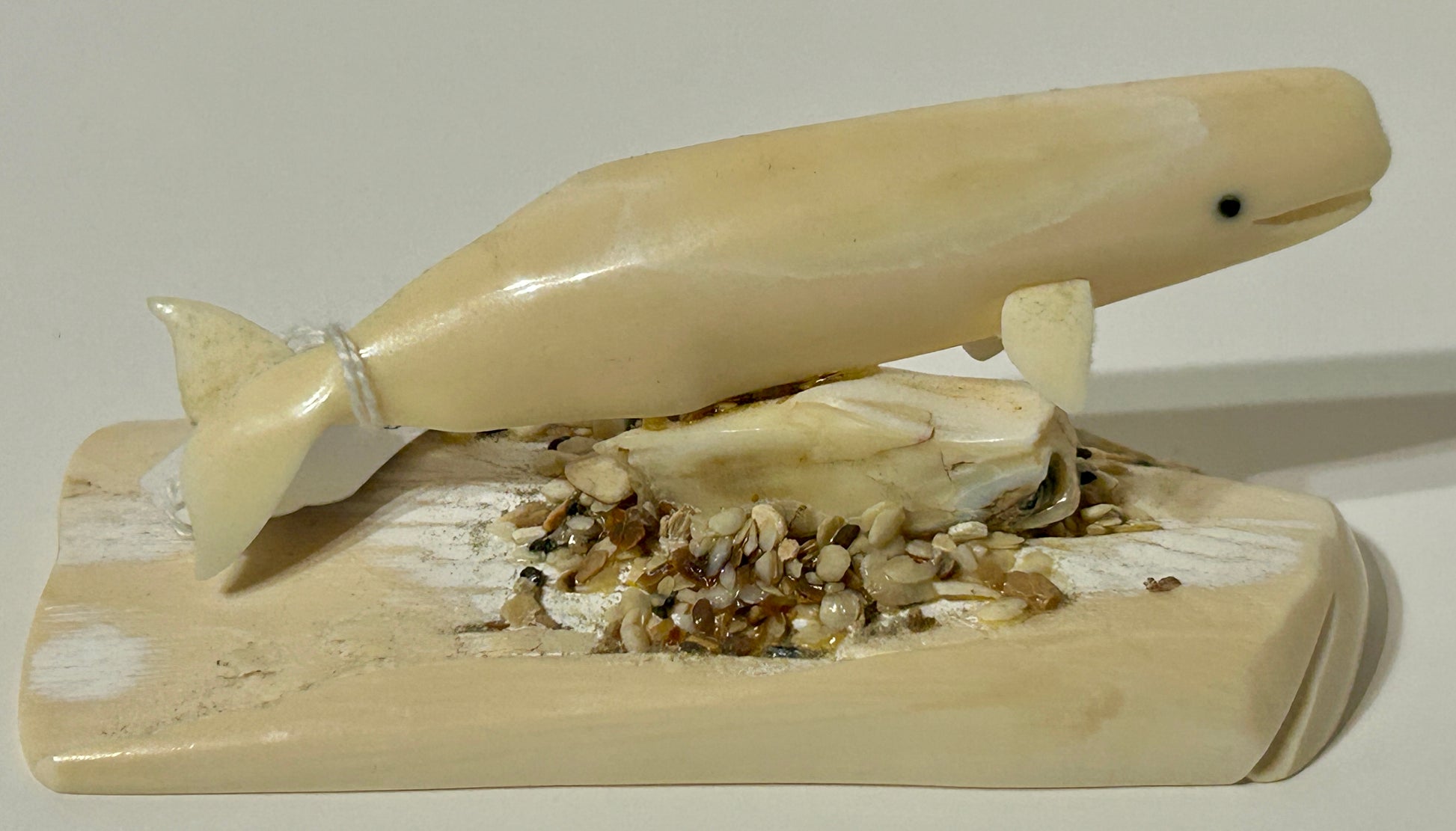 WALRUS IVORY FIGURAL WHALE CARVING ARTIST SIGNED