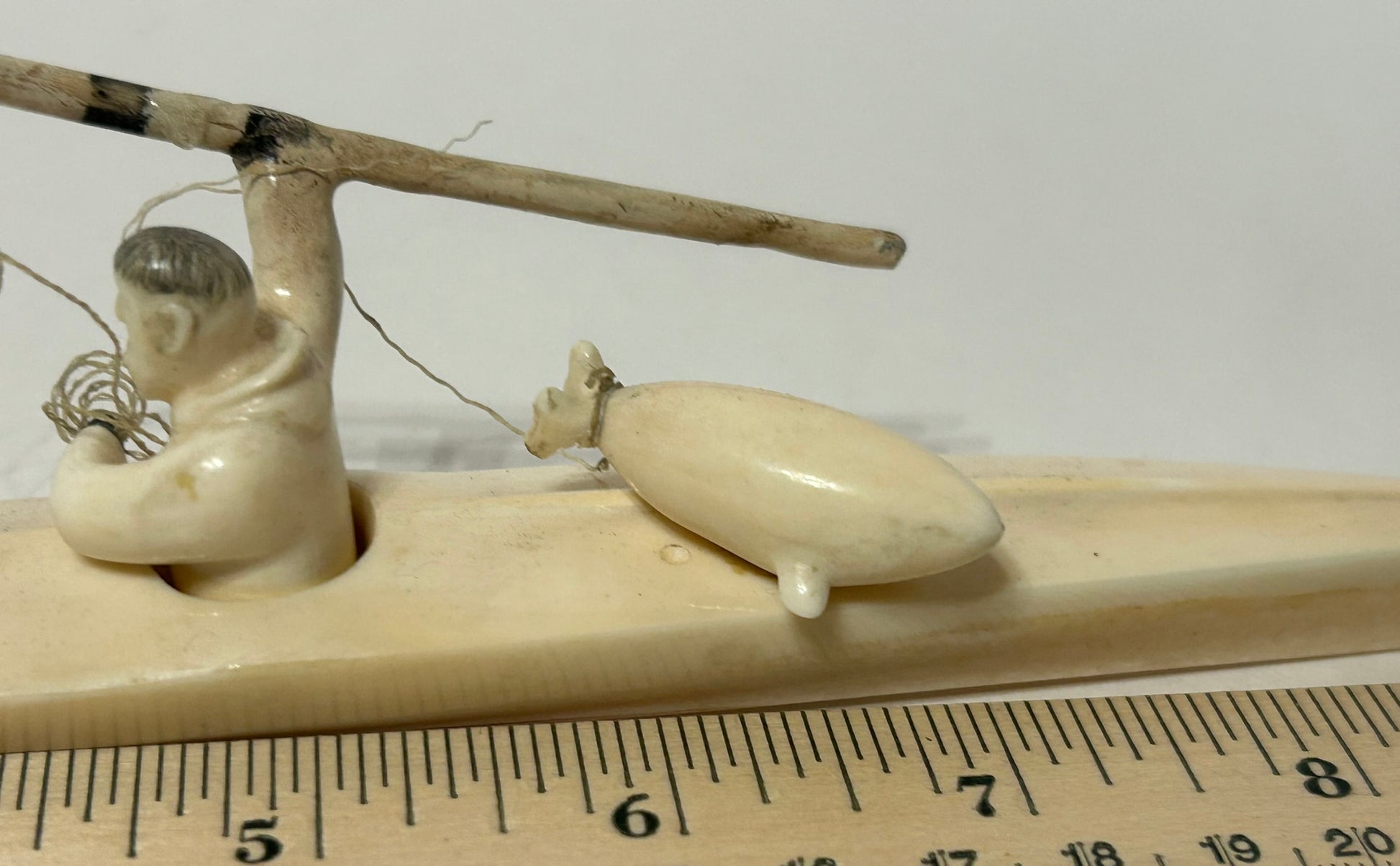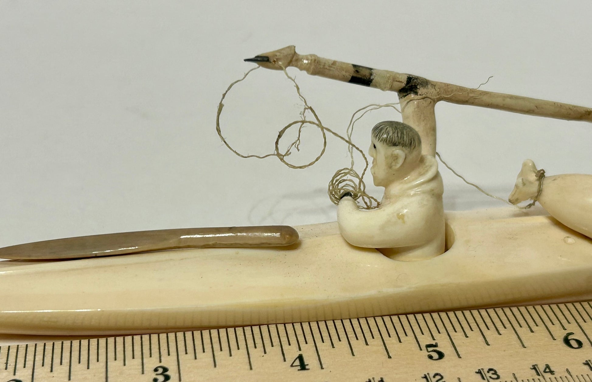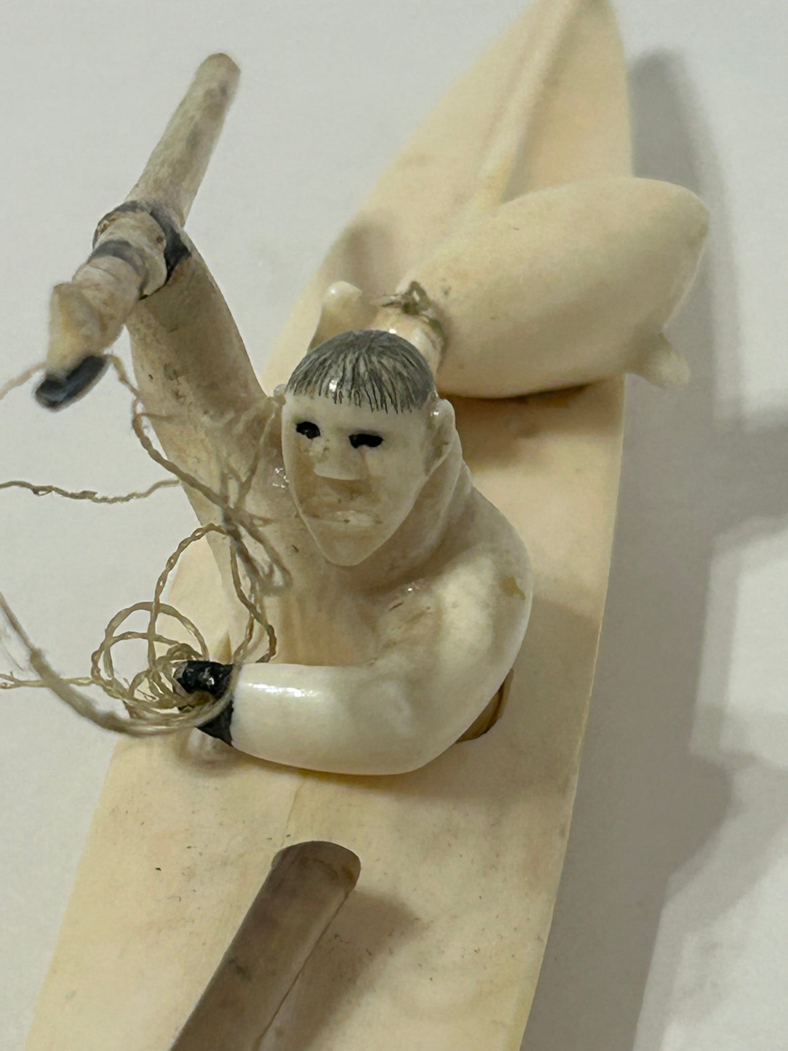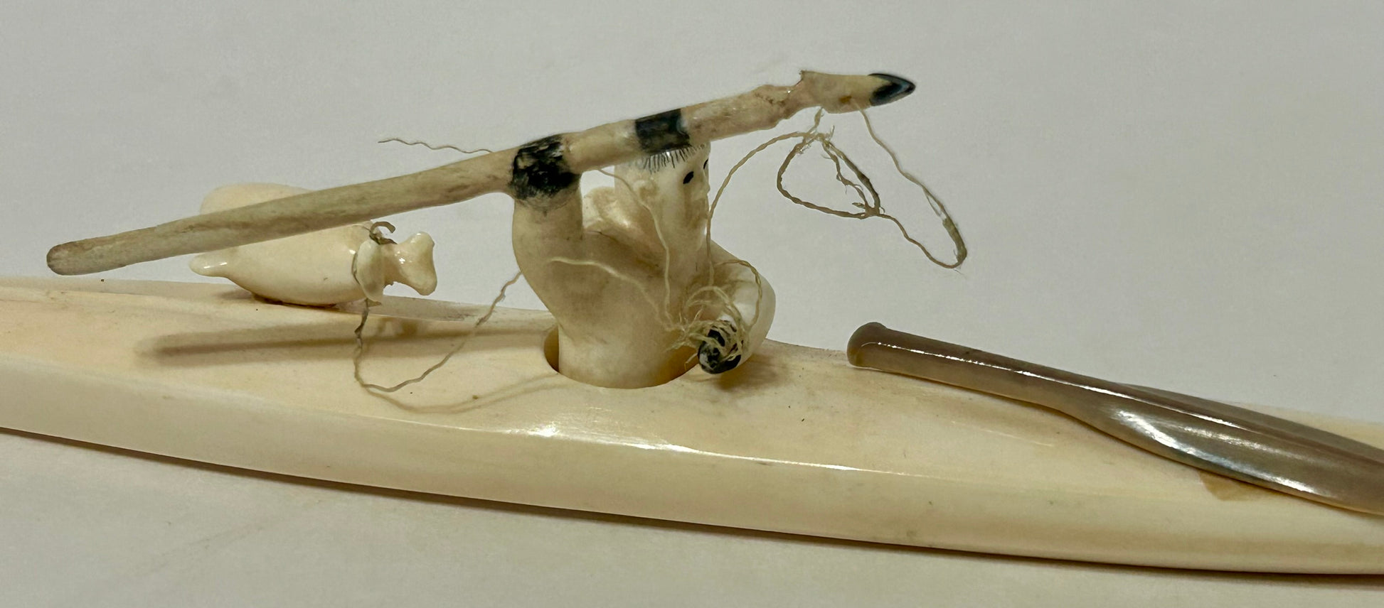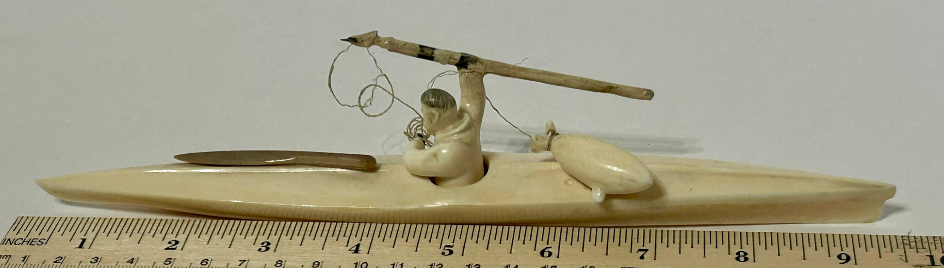 WALRUS IVORY INUIT SPEAR HUNTER IN KAYAK
