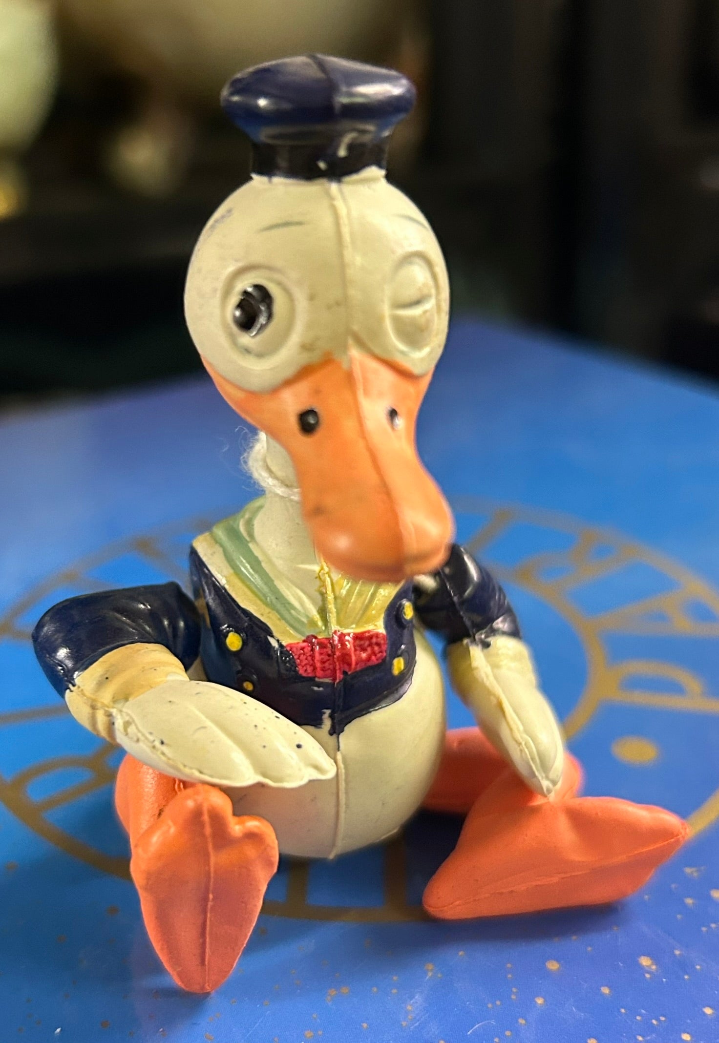 WALT DISNEY ANTIQUE DONALD DUCK CELLULOID TOY FIGURE 3 1/2" TALL. CALL OR TEXT FOR MORE INFORMATION