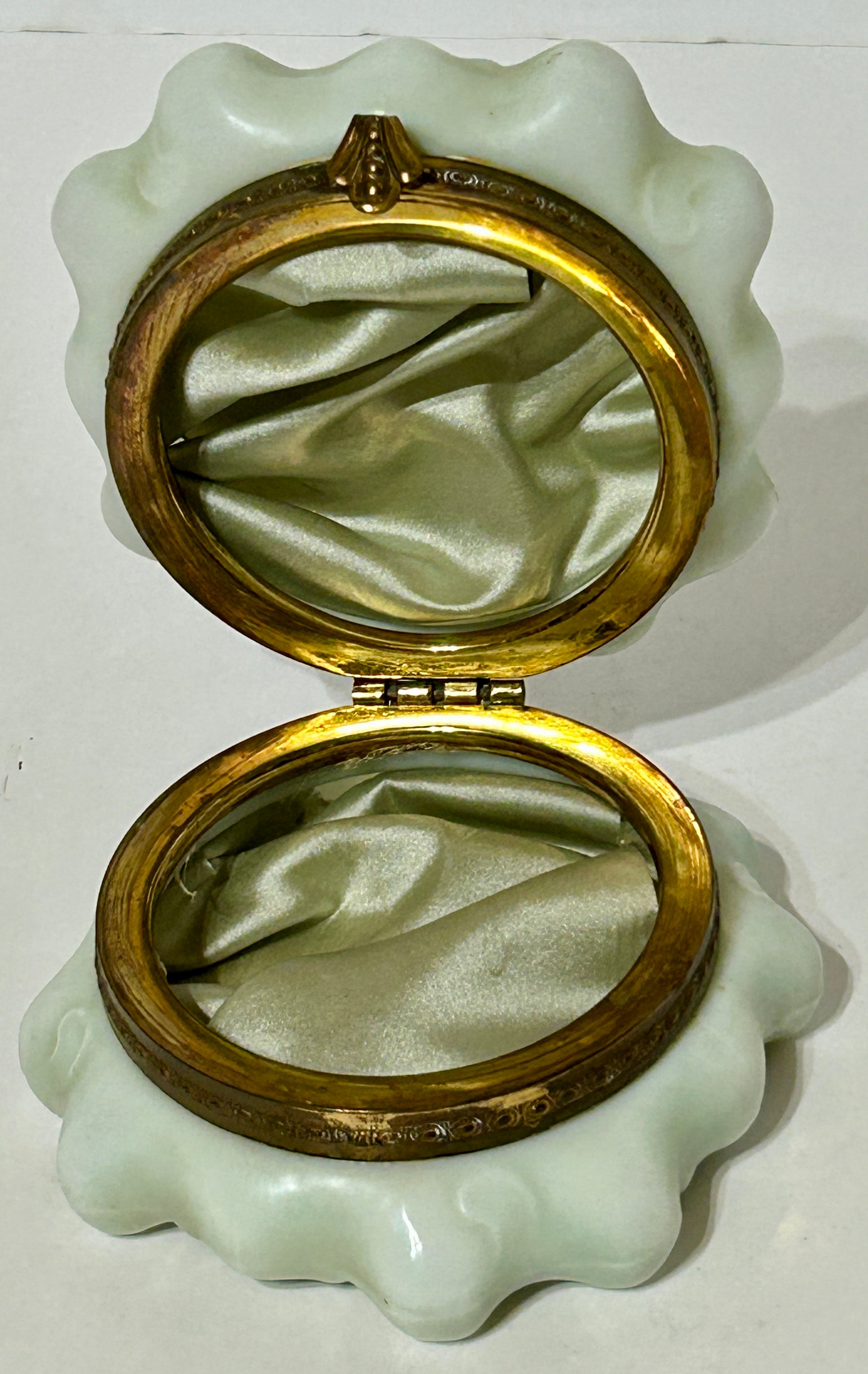 ANTIQUE WAVECREST SIGNED GLASS DRESSER BOX 5" DIAMETER X 3" TALL. CALL OR TEXT TRIPLE A ANTIQUES FOR A SHIPPING COST BEFORE YOU PURCHASE ITEM.