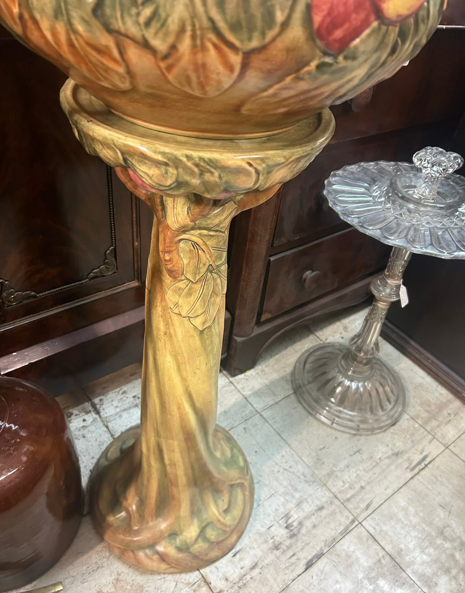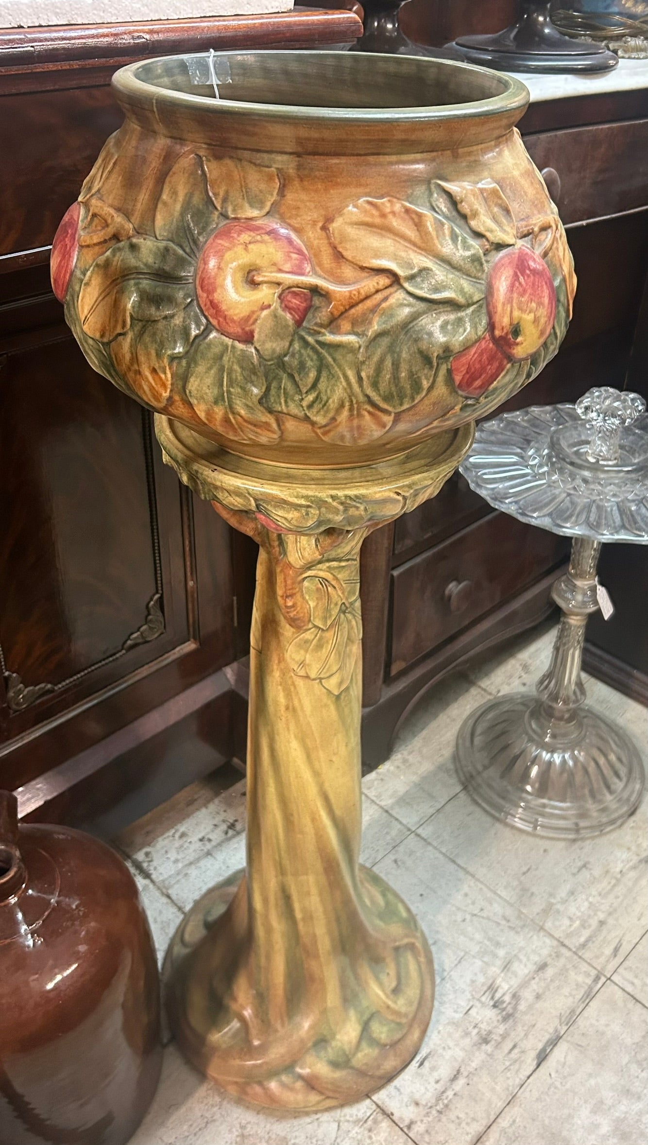 WELLER BALDIN JARDINERE AND STAND IN EXCELLENT SHAPE 40" HIGH. CALL, TEXT, OR E-MAIL FOR MORE INFORMATION