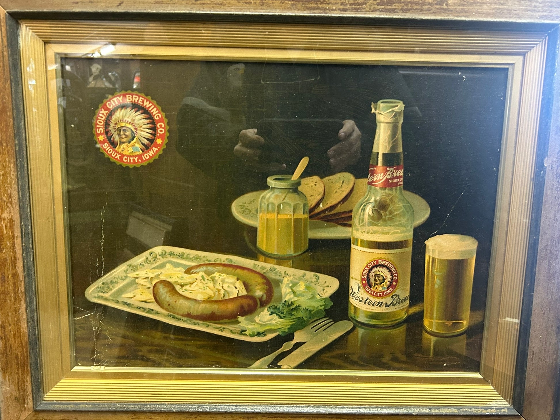 SOLD SOLD ANTIQUE WESTERN BREW IOWA BEER ADVERTISING PICTURE, 19" X 24" FRAMED AND 13" X 17 1/2" PICTURE ONLY. CALL, TEXT, OR E-MAIL FOR MORE INFORMATION SOLD