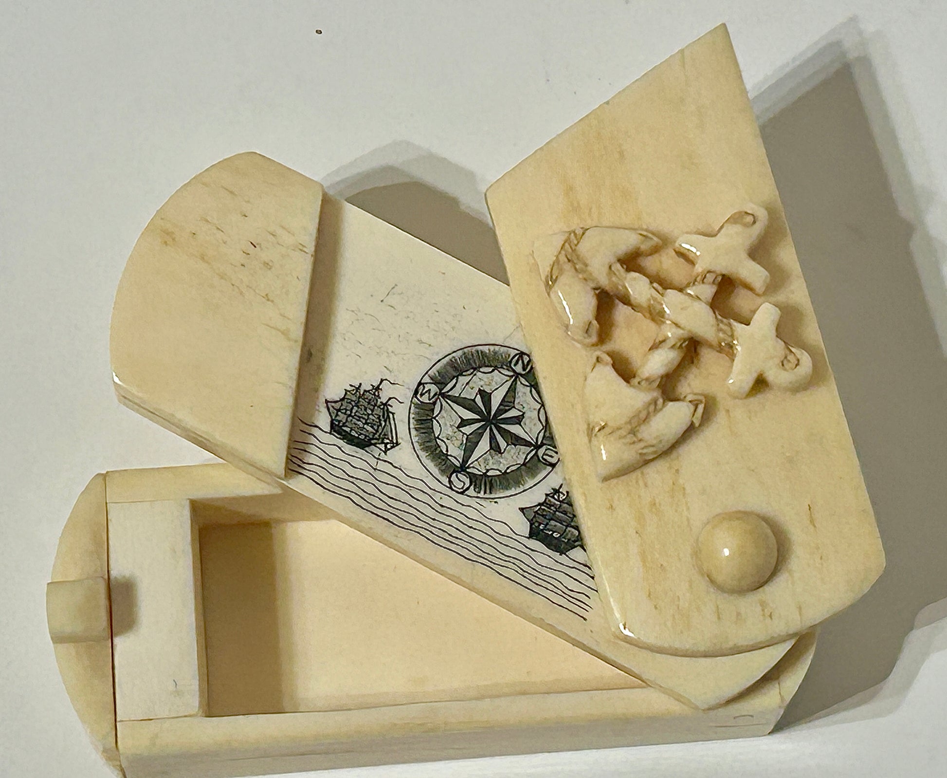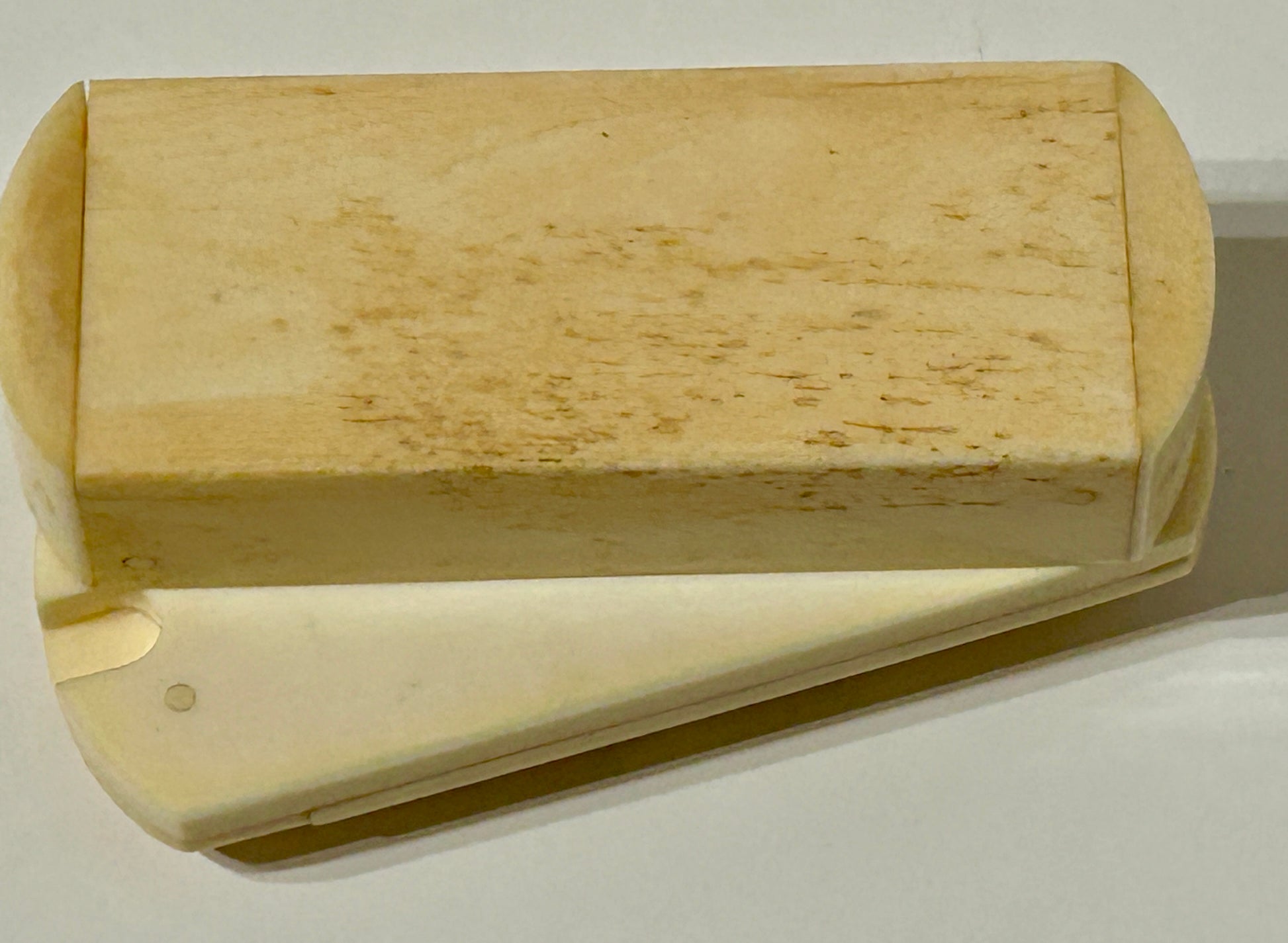 WHALE IVORY CARVED PUZZLE BOX 3 1/4" X 1 1/4" TALL. CALL OR TEXT FOR MORE INFORMATION