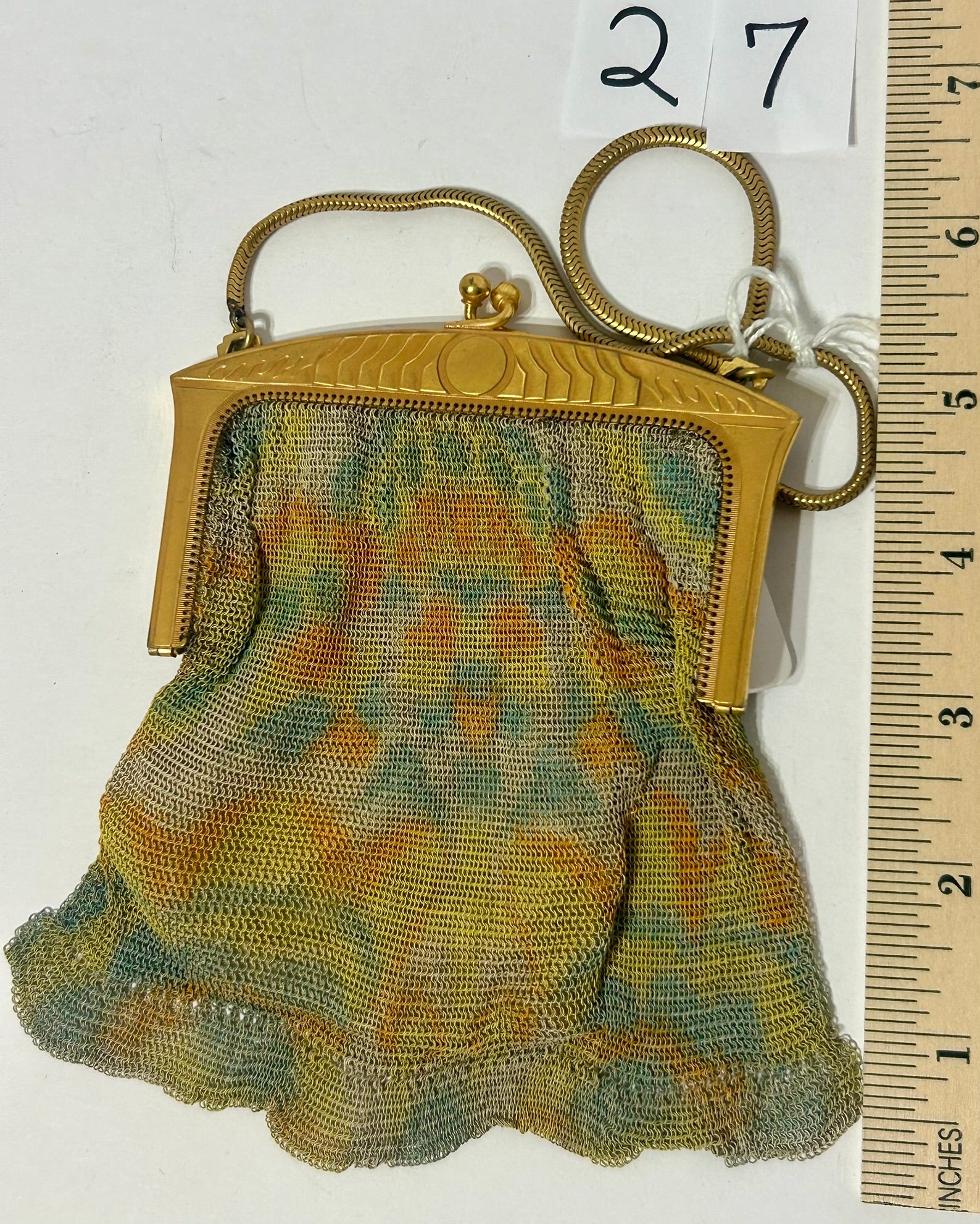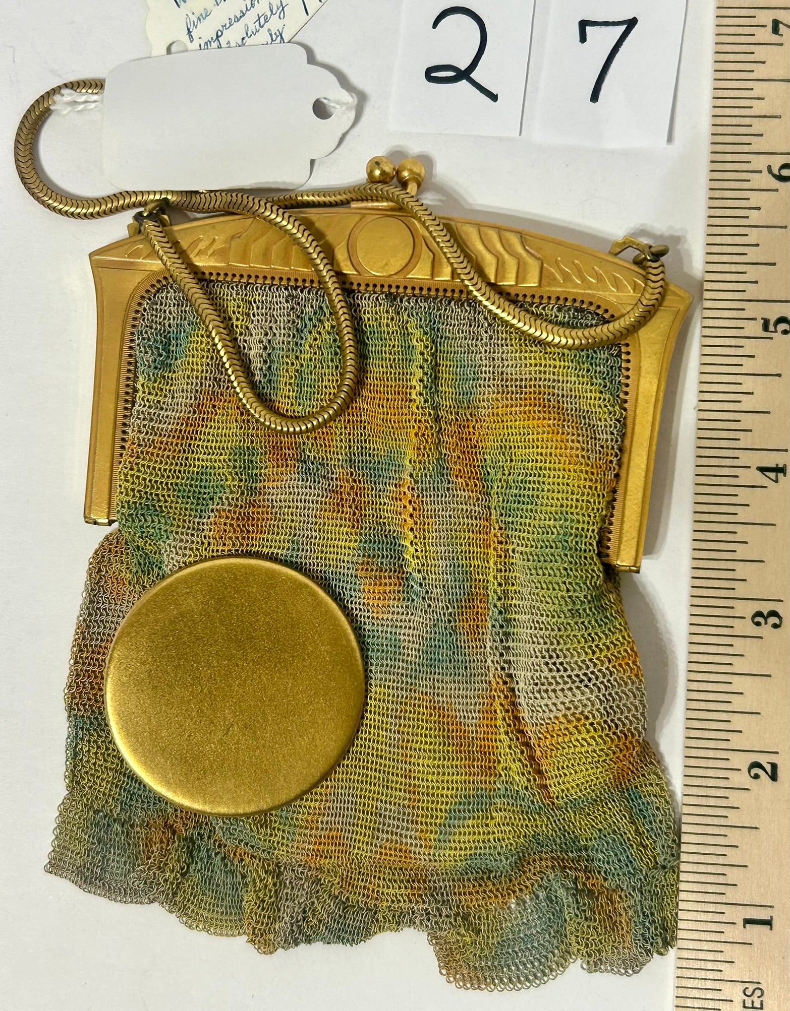 WHITING AND DAVIS ENAMELED FINE MESH 6" LONG PURSE WITH ORIGINAL MIRROR. CALL OR TEXT FOR MORE INFORMATION
