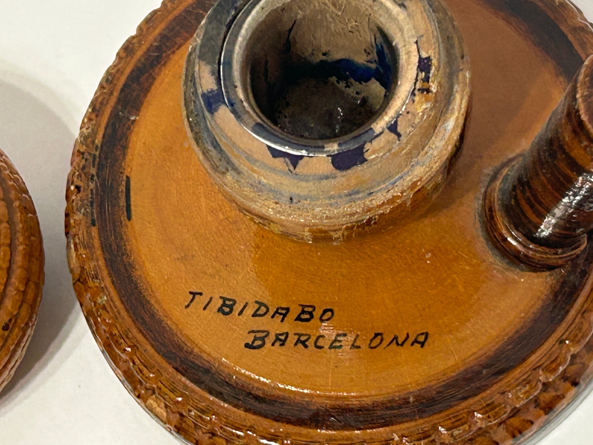 WOODEN ACORN SHAPE INKWELL MARKED TIBIDABO BARCELONA WITH TURNED MATCHING PEN 3" DIA. X 7 1/2" TALL WITH PEN. SHIPPING IS NOT INCLUDED IN PRICE SO CALL OR TEXT TO GET SHIPPING COST TO YOUR AREA
